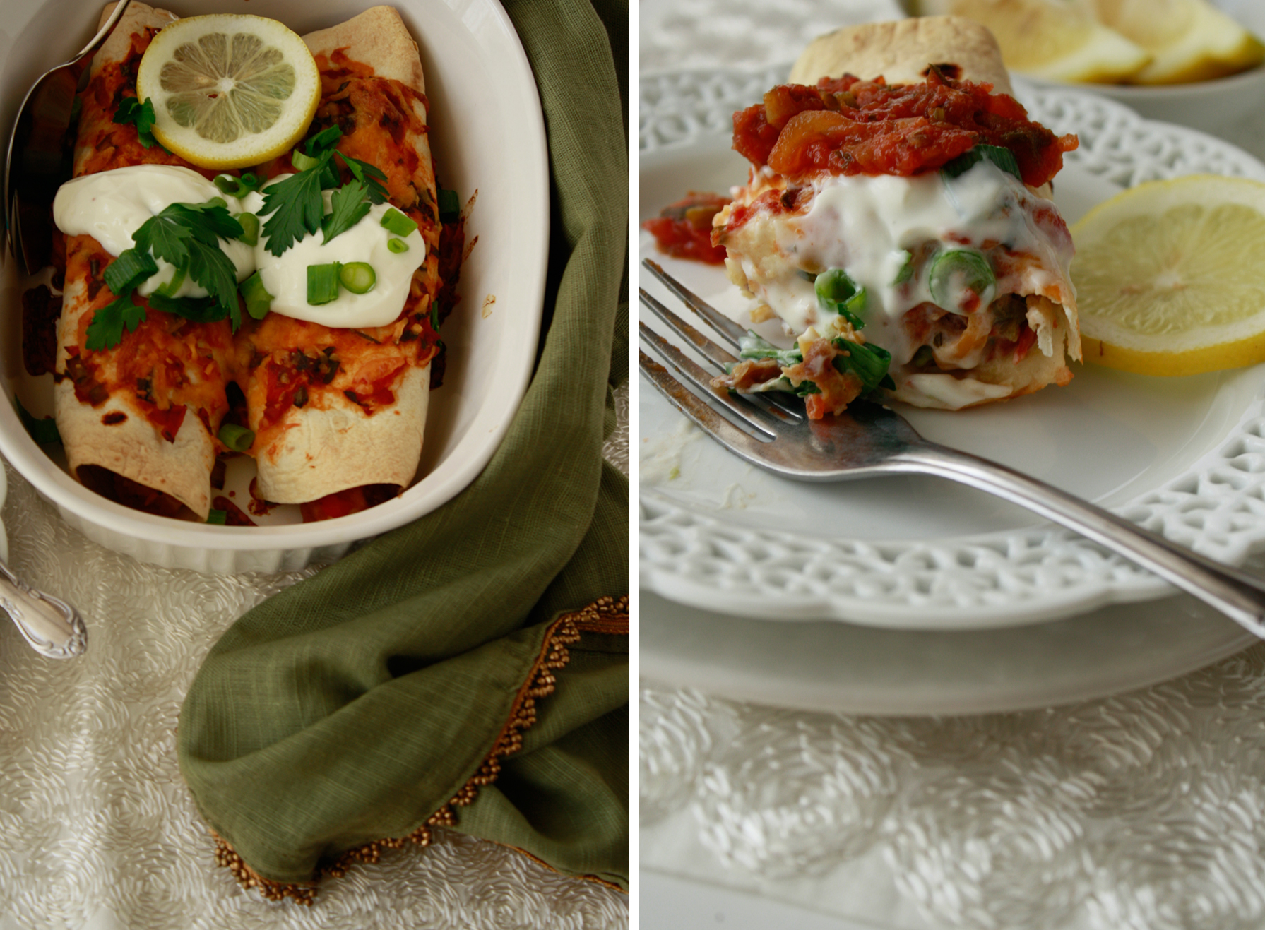 Frying the tofu is an important step in this recipe as it keeps it crisp and firm, specially since it is mixed with tomato, onion and lime juice- saves it from getting mushy. Apart from tofu all the other ingredients are very basic, easily available at a regular grocery store and its a quick recipe too- I had everything ready and assembled in the oven for baking within 45 min. You can make this dish for a big gathering or a party because the prep time will remian more or less the same and one tortilla makes for a pretty decent serving!
