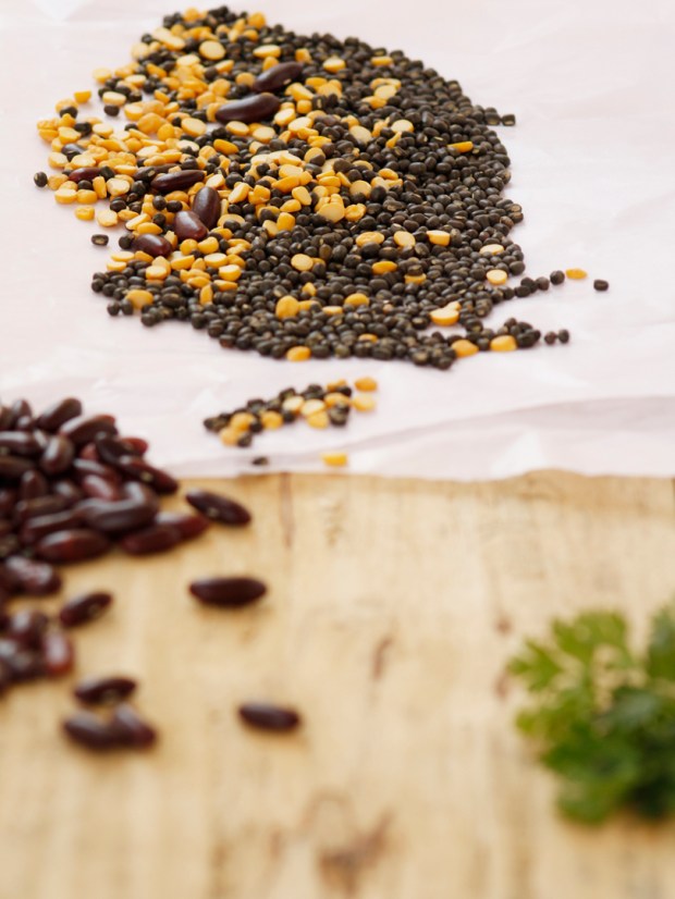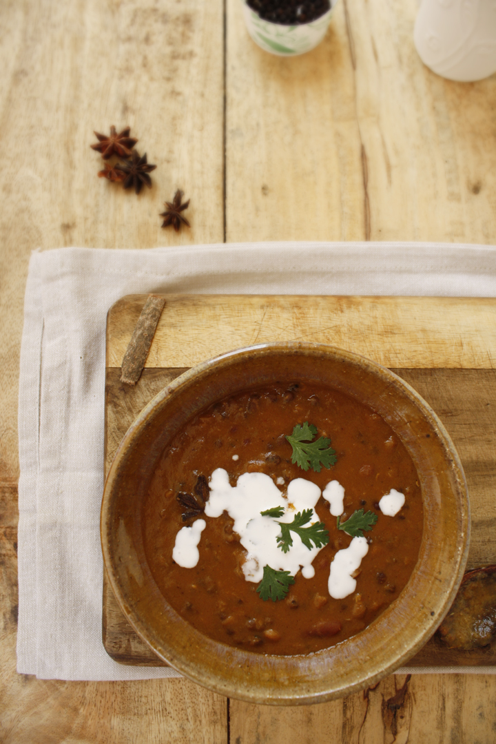 Soak the lentils and the kidney beans in water overnight and boil with 2 glasses of water with salt, a teaspoon of ghee and a teaspoon of garam masala till the lentils are cooked. I used a pressure cooker for this which speeds up the whole process but you can also make it in a slow cooker, or just cook it in a pan- covered…it will take roughly 2 hrs. Also if you are making it in a pan..either use canned kidney beans or just skip it completely cause it will take a lot longer to cook than the lentils.