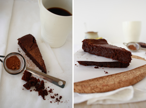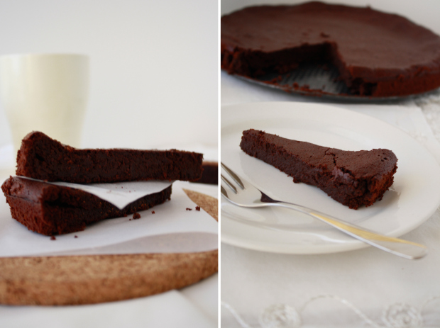 Since there is no flour in this cake, it doesnβt rise and is a very rich and dense cake with beautiful chocolate flavor. Pair it with a nice vanilla sauce with some candied almonds or just the cake with coffee…yumm!