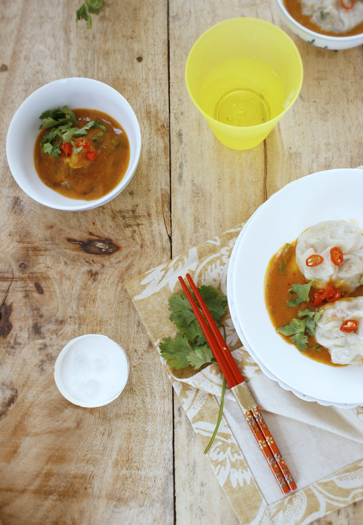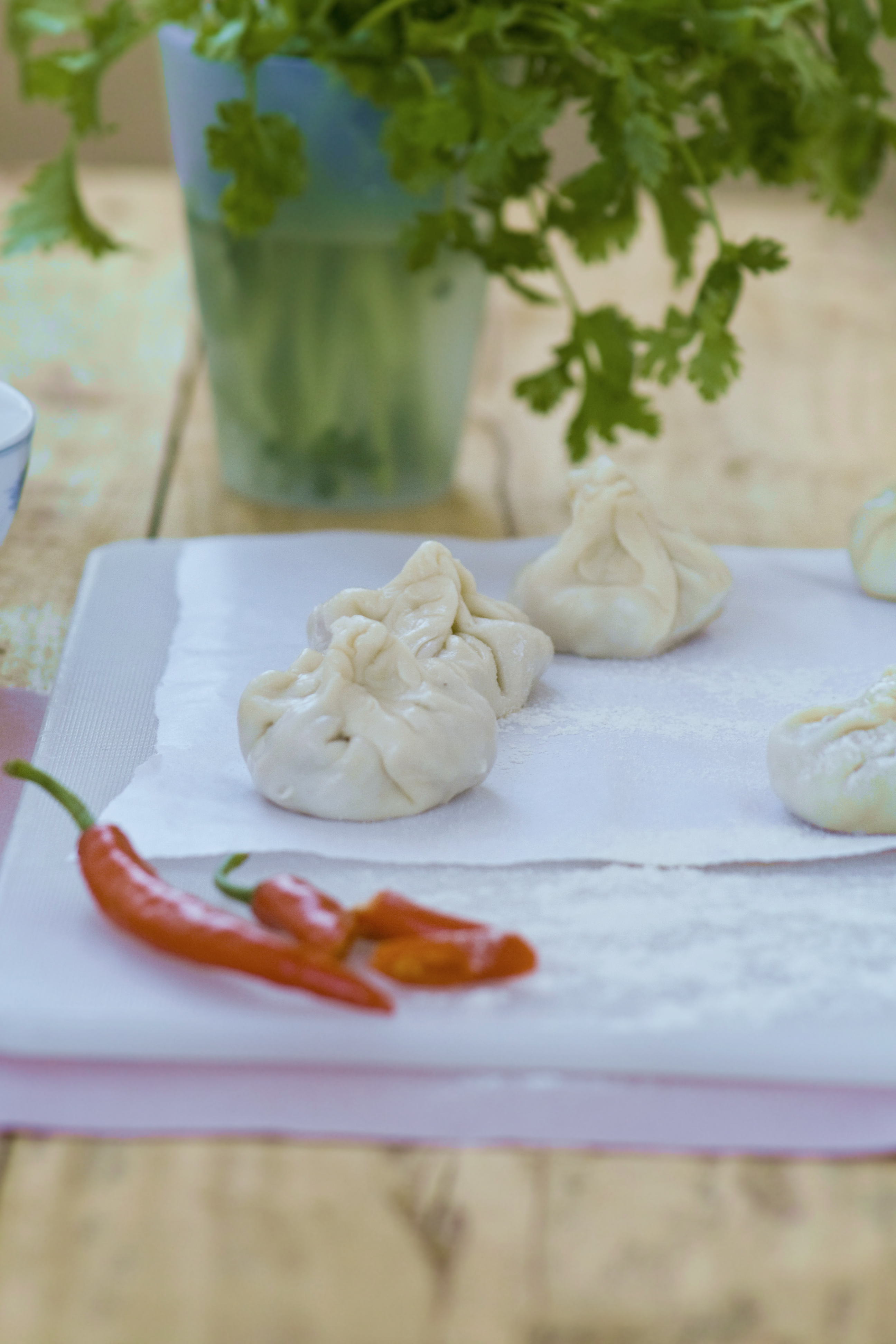 I am so excited because soon I am going to be cooking with a few friends and making some fusion food, really looking forward to what comes out of our collaboration. In the meantime here is a recipe for momos which is basically dumpling from the Himalayan states of India. I served it with a flavorful curry sauce and spiked up everything with some nice red chilies.