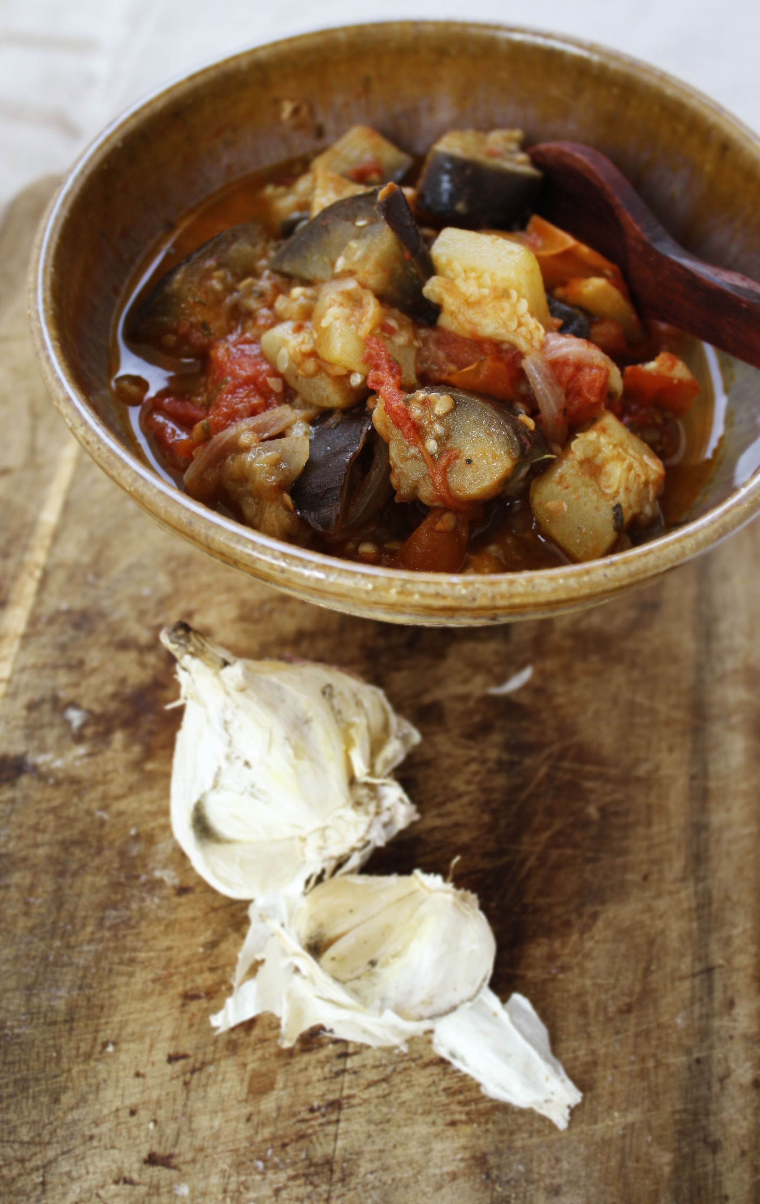A very simple recipe from the South of France. A dear friend of mine Luciole came over and shared her family recipe for Ratatouille with me. This is what I call perfect comfort food. It requires minimum effort in cooking and is so easy on your tummy not to mention nourishing. I had such a great time making the dish with her and listening to her describe her childhood in Nice and how maybe she wants to grow up into an old woman that sells organic honey and olives. Good Times!