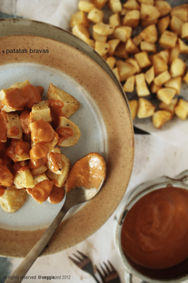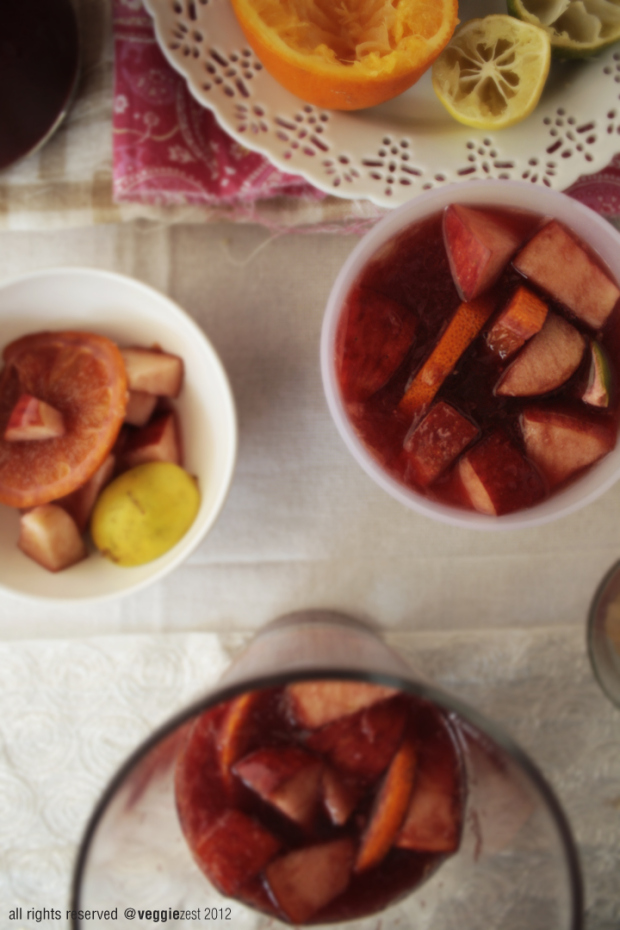 A while back I made patatas bravas & sangria for a party and there were these friends of ours who loved the sangria so much that they kept asking for the recipe…well, the interesting part in this whole story is that they are from Spain!! I was so excited, its like me (someone from India) asking an American to share their recipe for- I don’t know… Dal Makhani ?!?! That’s pretty awesome, don’t you think?!
