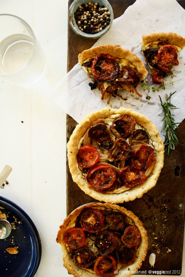 Even though I caramelized the onions and semi cooked the tomatoes before baking, it took a good 30 minutes to get ready + the time it took to cook the tart before dressing it up.