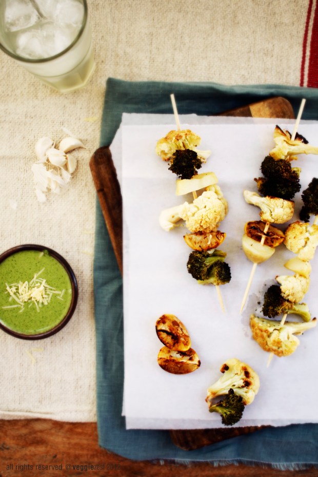 You can also serve these grilled cauliflower and broccoli florets as a salad. Just throw it in a bowl and toss with some of the cilantro pesto. It is a healthy and a flavorful meal for a hot summer day!