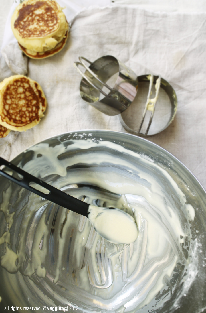 Well, tea was the inspiration behind today’s recipe. I made these savory crumpets - they are a perfect snack for tea time. Crumpets are a British delicacy. They are basically griddle cakes made with a batter of flour and yeast. The yeast gives them a very porous texture which makes them absorb any topping - butter, preserves, cheeses, sauce etc. They are super versatile when it comes to pairing with different flavors. Crumpet, I feel is definitely a relative of pancake - therefore can be paired with sweet or savory flavors.