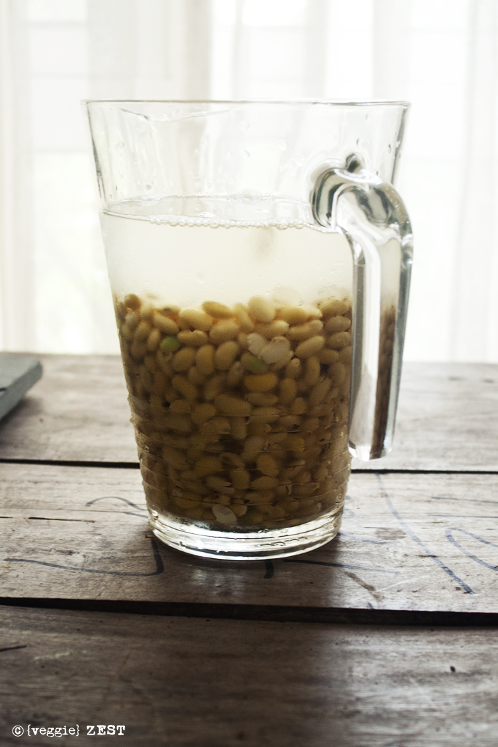 - Soak dry soy beans in enough water to come up till and inch above the level of beans. Soak the beans overnight or a minimum of 8 hours.