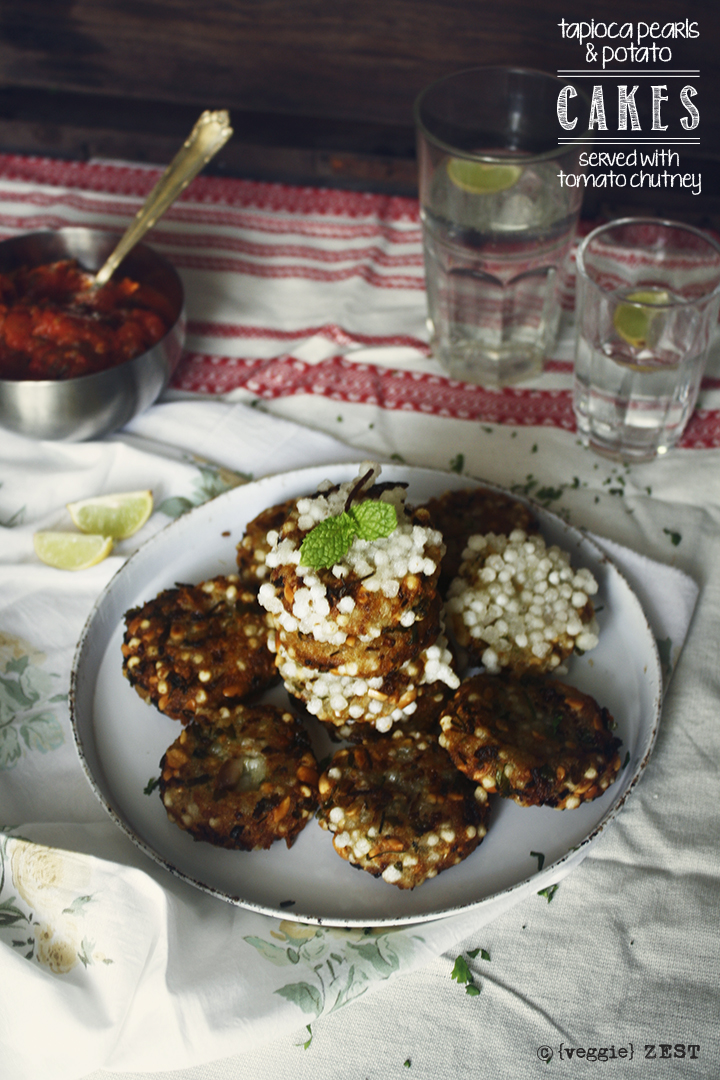 Its been a while since I’ve done an Indian recipe here. So today’s post is this vegan, Indian recipe for a delicious appetizer. More commonly known as sabudana vada, this is a street food which originates from the western part (Maharashtra) of India. Its usually served with a spicy green chutney (just like any other street food in India), but since I am not a big fan of that I served it with a very versatile tomato chutney. I call it versatile because not very long ago I made this same chutney and added potatoes in it and then served it over couscous for dinner. It was delicious. So even if you decide to not try the cakes (for whatever crazy reason) - you MUST try the chutney…it is really Yum!